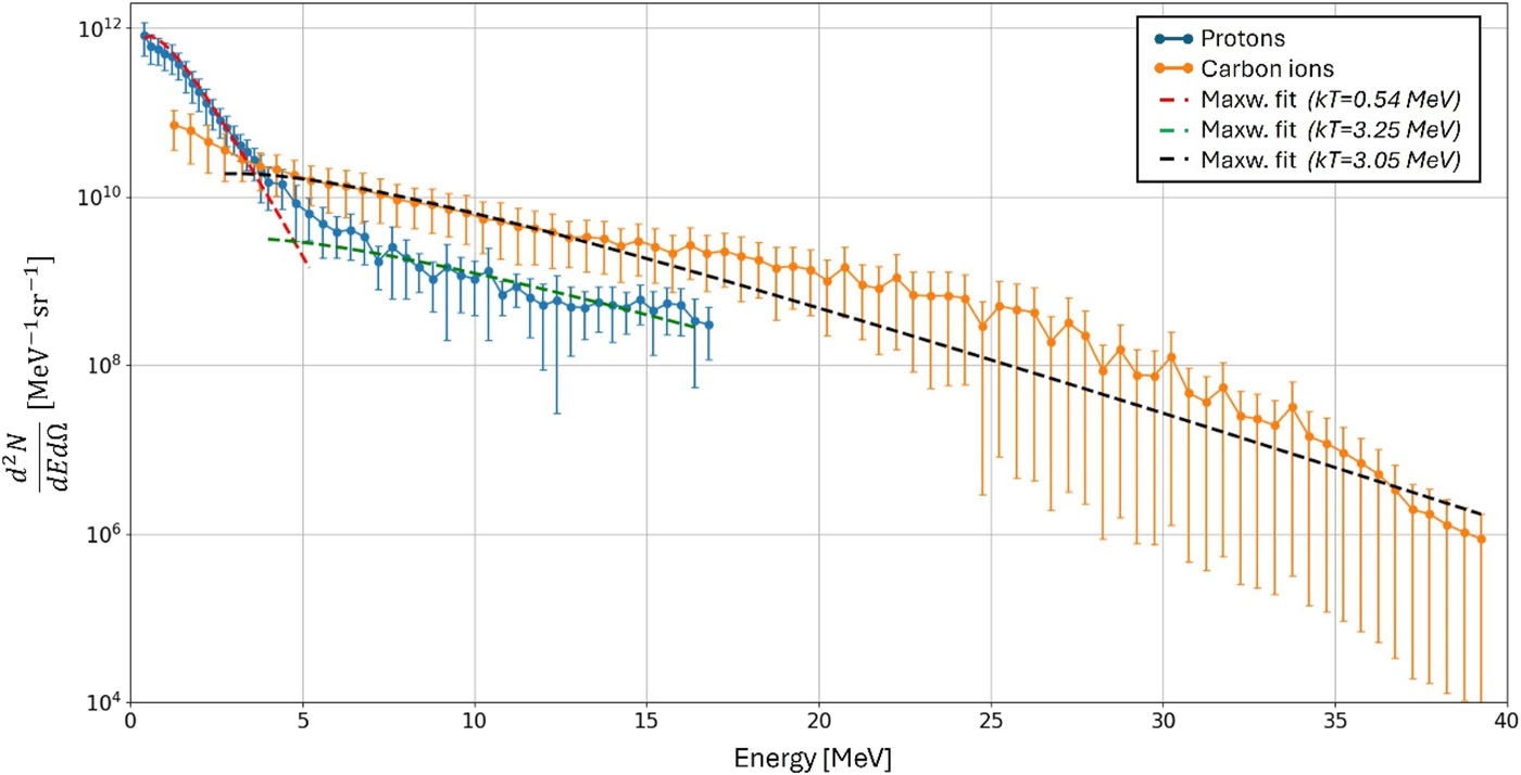 M. Scisciò: Conceptualization (equal); Data curation (equal); Formal analysis (equal); Investigation (equal); Methodology (equal); Supervision (equal); Validation (equal); Writing – original draft (equal). G. Petringa: Data curation (equal); Formal analysis (equal); Investigation (equal); Methodology (equal); Validation (equal); Writing – original draft (equal). Z. Zhu: Data curation (equal); Formal analysis (equal); Investigation (equal); Software (equal); Writing – review & editing (equal). M. R. D. Rodrigues: Data curation (equal); Formal analysis (equal); Investigation (equal); Methodology (equal); Writing – review & editing (equal). M. Alonzo: Formal analysis (equal); Investigation (equal); Writing – review & editing (equal). P. L. Andreoli: Investigation (equal); Writing – review & editing (equal). F. Filippi: Investigation (equal); Writing – review & editing (equal). Fe. Consoli: Investigation (equal); Writing – review & editing (equal). M. Huault: Data curation (equal); Investigation (equal); Writing – review & editing (equal). D. Raffestin: Data curation (equal); Investigation (equal); Writing – review & editing (equal). D. Molloy: Data curation (equal); Investigation (equal); Writing – review & editing (equal). H. Larreur: Investigation (equal); Writing – review & editing (equal). D. Singappuli: Investigation (equal); Writing – review & editing (equal). T. Carriere: Investigation (equal); Writing – review & editing (equal). C. Verona: Data curation (equal); Investigation (equal); Writing – review & editing (equal). P. Nicolai: Investigation (equal); Writing – review & editing (equal). A. McNamee: Investigation (equal); Writing – review & editing (equal). M. Ehret: Data curation (equal); Investigation (equal); Writing – review & editing (equal). E. Filippov: Data curation (equal); Investigation (equal); Writing – review & editing (equal). R. Lera: Investigation (equal); Writing – review & editing (equal). J. A. Pérez-Hernández: Investigation (equal); Methodology (equal); Writing – review & editing (equal). S. Agarwal: Data curation (equal); Investigation (equal); Writing – review & editing (equal). M. Krupka: Data curation (equal); Investigation (equal); Writing – review & editing (equal). S. Singh: Data curation (equal); Investigation (equal); Writing – review & editing (equal). V. Istokskaia: Data curation (equal); Investigation (equal); Writing – review & editing (equal). D. Lattuada: Data curation (equal); Investigation (equal); Writing – review & editing (equal). M. La Cognata: Investigation (equal); Writing – review & editing (equal). G. L. Guardo: Investigation (equal); Writing – review & editing (equal). S. Palmerini: Investigation (equal); Writing – review & editing (equal). G. Rapisarda: Investigation (equal); Writing – review & editing (equal). K. Batani: Investigation (equal); Writing – review & editing (equal). M. Cipriani: Investigation (equal); Writing – review & editing (equal). G. Cristofari: Investigation (equal); Writing – review & editing (equal). E. Di Ferdinando: Investigation (equal); Writing – review & editing (equal). G. Di Giorgio: Investigation (equal); Writing – review & editing (equal). R. De Angelis: Investigation (equal); Writing – review & editing (equal). D. Giulietti: Investigation (equal); Writing – review & editing (equal). J. Xu: Investigation (equal); Writing – original draft (equal). L. Volpe: Investigation (equal); Writing – review & editing (equal). M. D. Rodríguez-Frías: Investigation (equal); Writing – review & editing (equal). L. Giuffrida: Investigation (equal); Writing – review & editing (equal). D. Margarone: Conceptualization (supporting); Investigation (equal); Writing – review & editing (equal). D. Batani: Investigation (equal); Resources (supporting); Writing – review & editing (equal). G. A. P. Cirrone: Conceptualization (supporting); Data curation (equal); Formal analysis (equal); Investigation (equal); Methodology (equal); Writing – original draft (equal). A. Bonasera: Conceptualization (equal); Data curation (equal); Formal analysis (equal); Investigation (equal); Methodology (equal); Software (equal); Validation (equal); Writing – original draft (equal). Fa. Consoli: Conceptualization (equal); Data curation (equal); Formal analysis (equal); Funding acquisition (equal); Investigation (equal); Methodology (equal); Project administration (equal); Resources (equal); Supervision (equal); Validation (equal); Writing – original draft (equal).