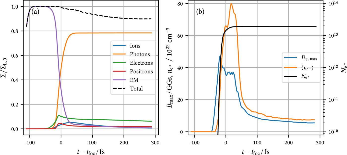 I. Yu. Kostyukov and E. N. Nerush, “Production and dynamics of positrons in ultrahigh intensity laser-foil interactions,” Phys. Plasmas 23, 093119 (2016).10.1063/1.4962567